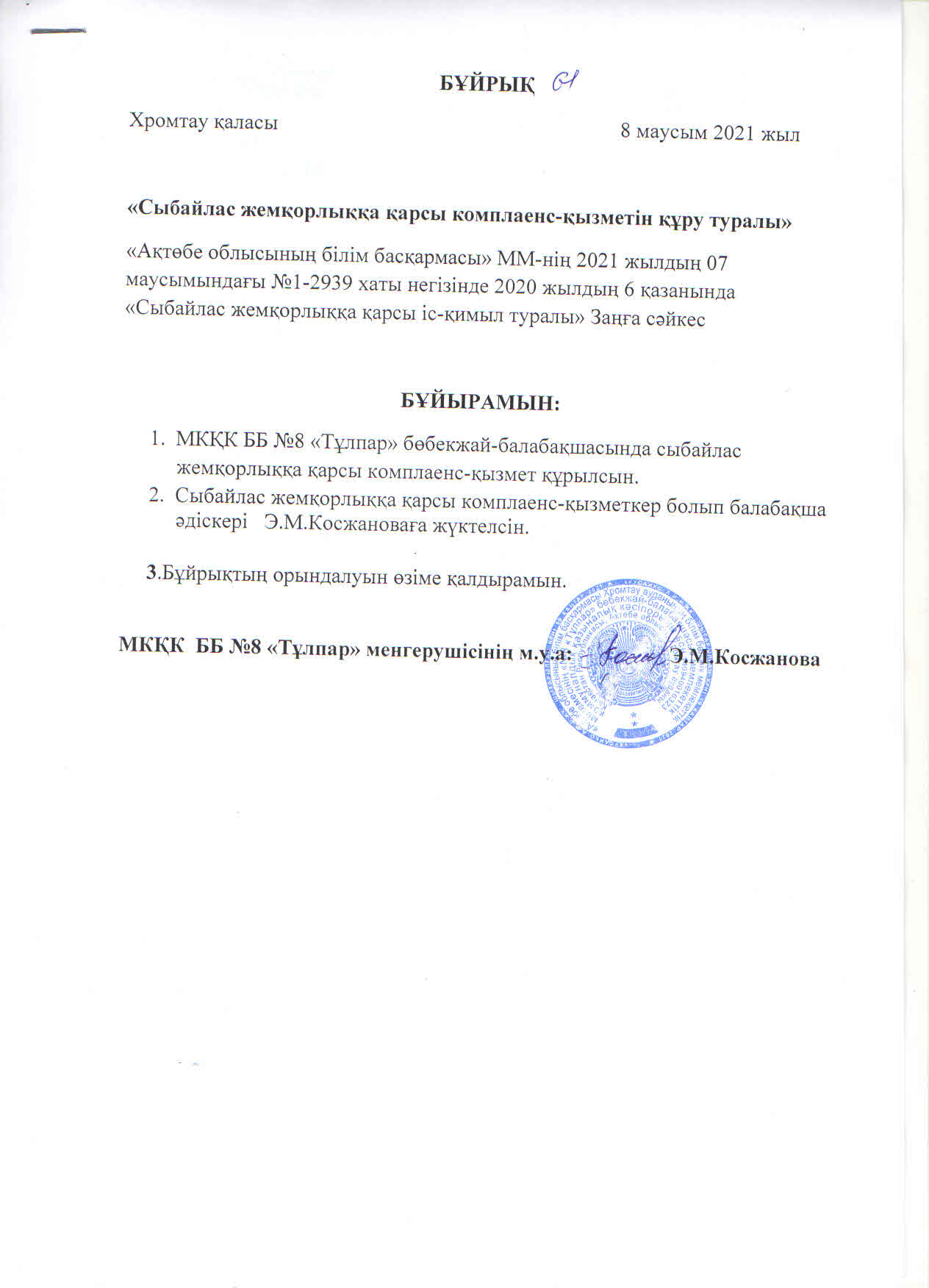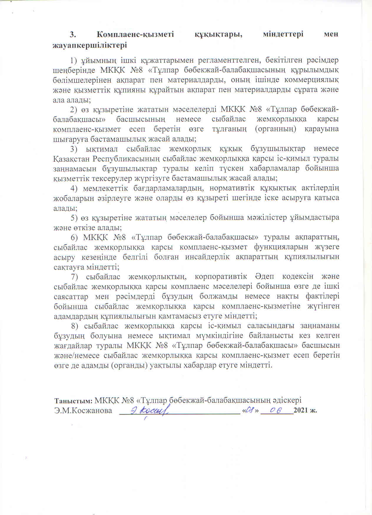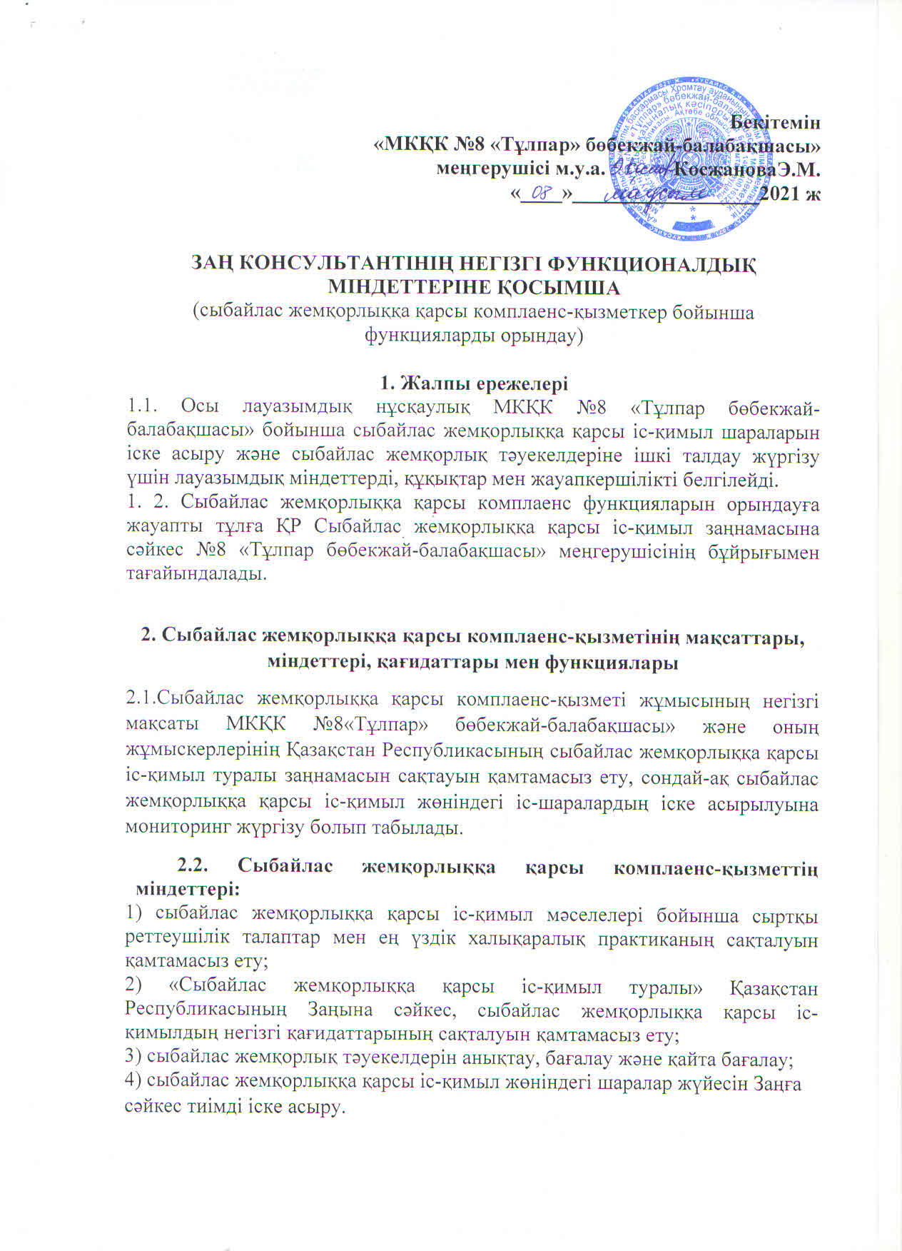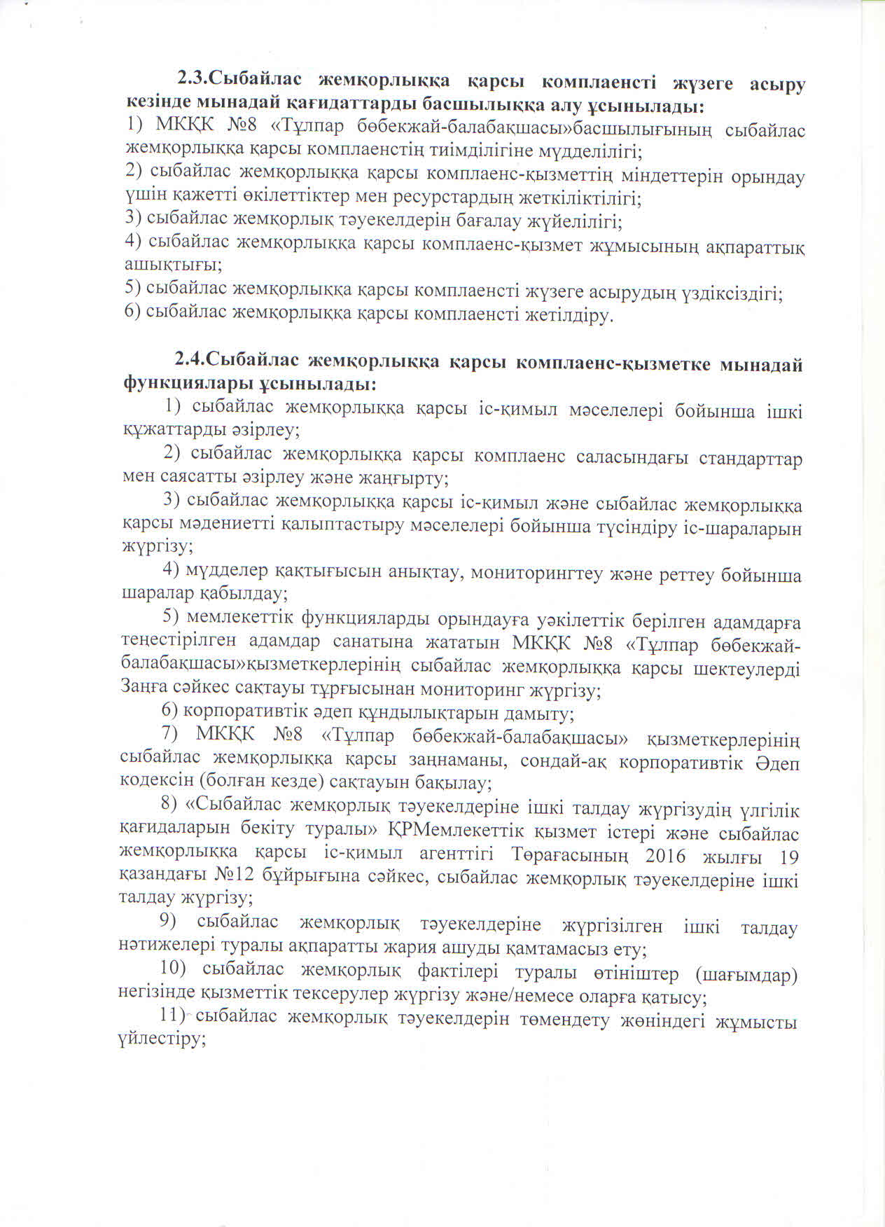 | 1 | Сыбайлас жемқорлыққа қарсы комплаенс - қызметін құру туралы | ![]() |